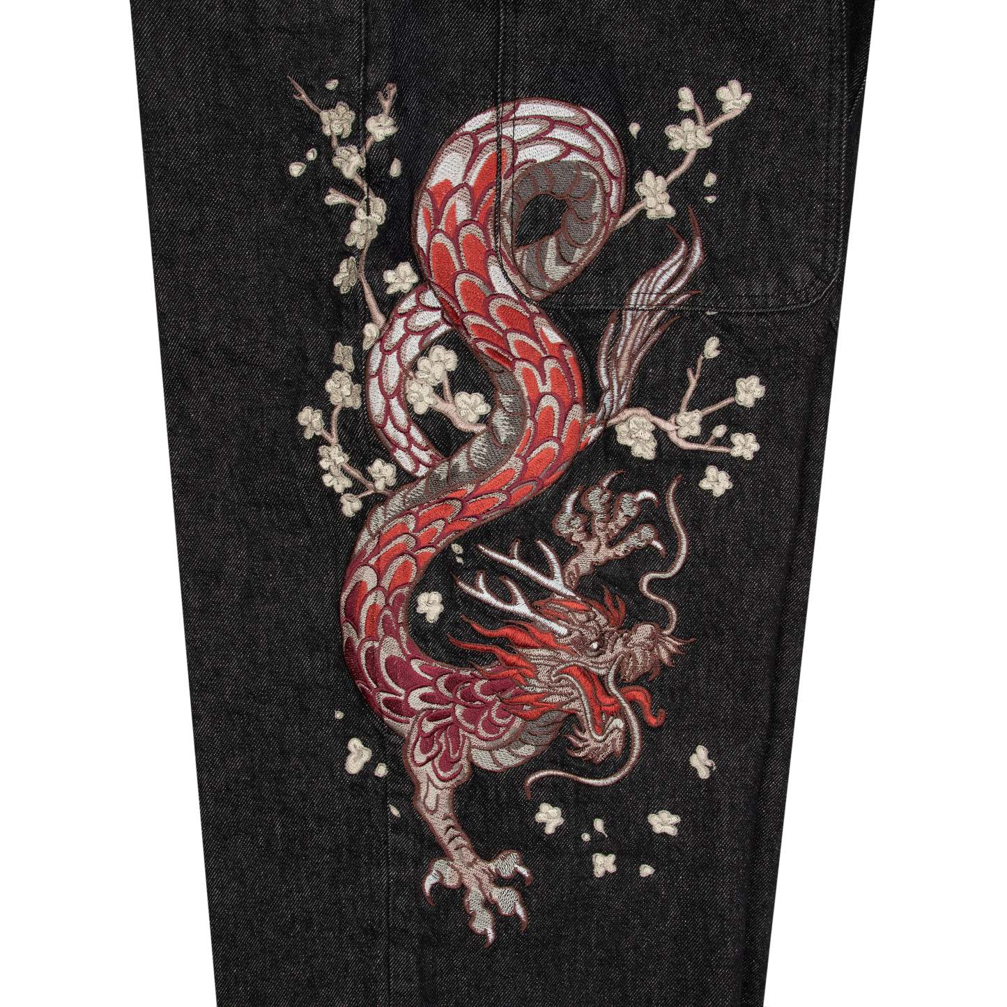14oz raw denim / 100% cotton / embroidery on front and back / debossed printed leather patch / wash inside out / balloon fit / fits true to size