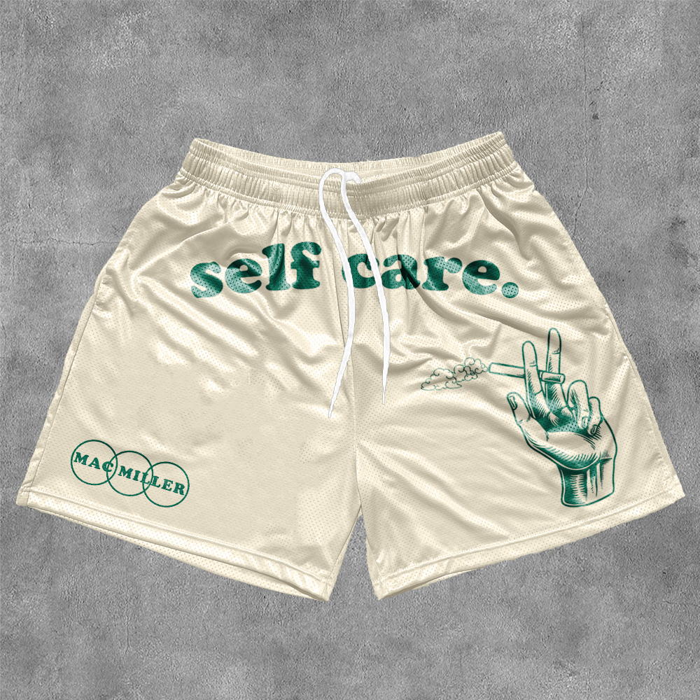 Self Care Print Mesh Drawstring Shorts