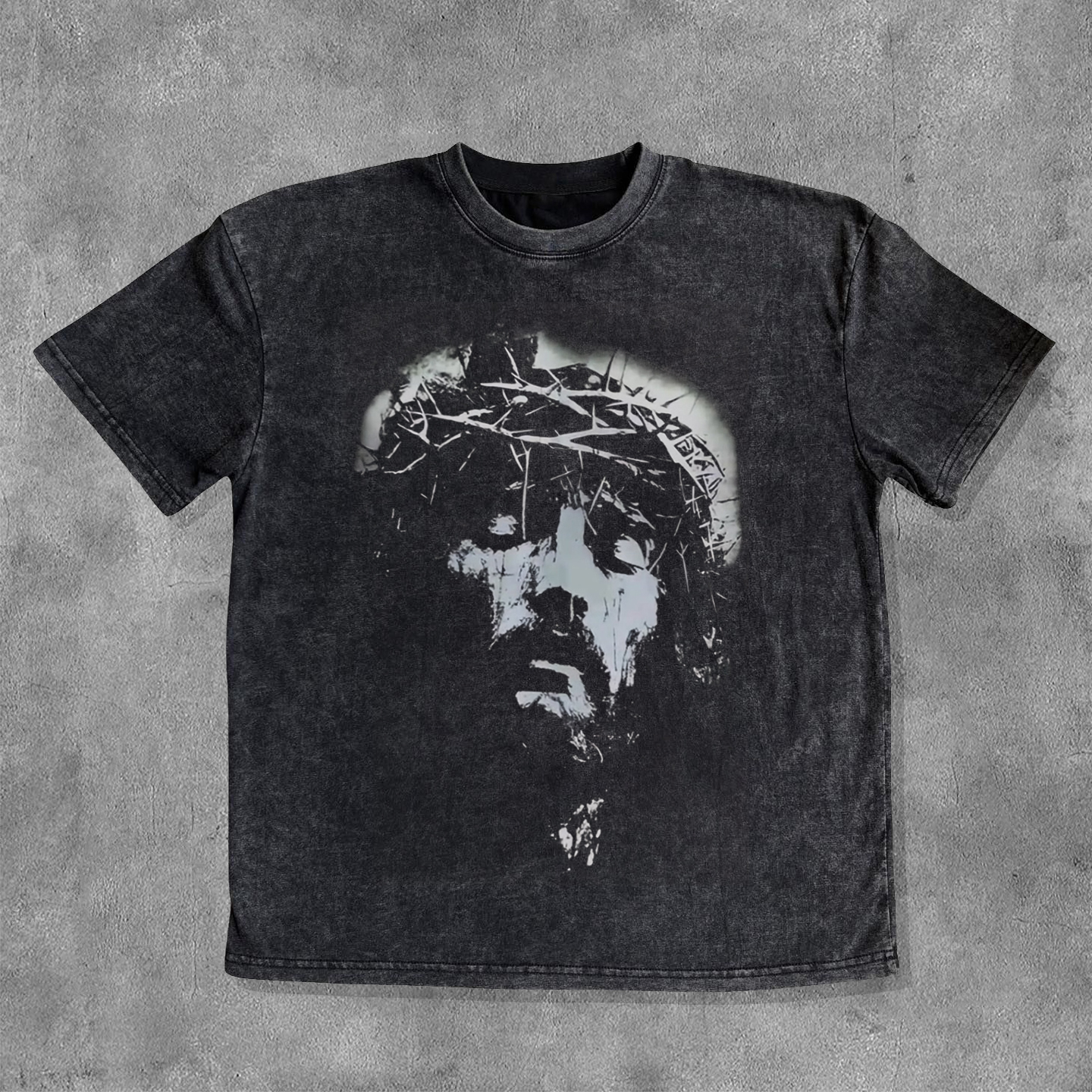 Jesus Cross Washed Distressed Short Sleeve T-Shirt