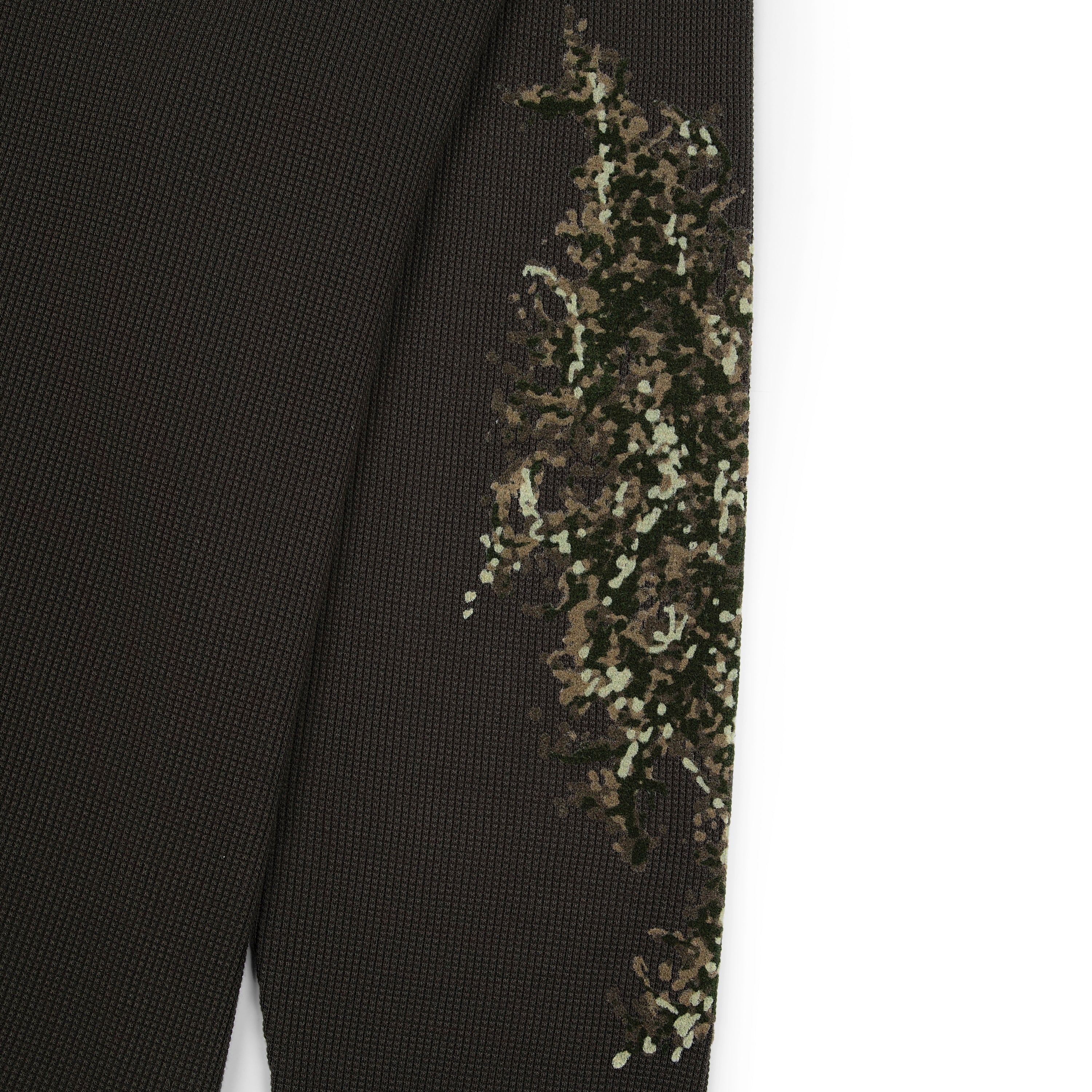 320gsm waffle fabric / 97% preshrunk cotton 3% elastane / embroidered on the neck / flock print on front, shoulder and sleeve / slightly distressed on collar rib, cuffs and hem / fits true to size