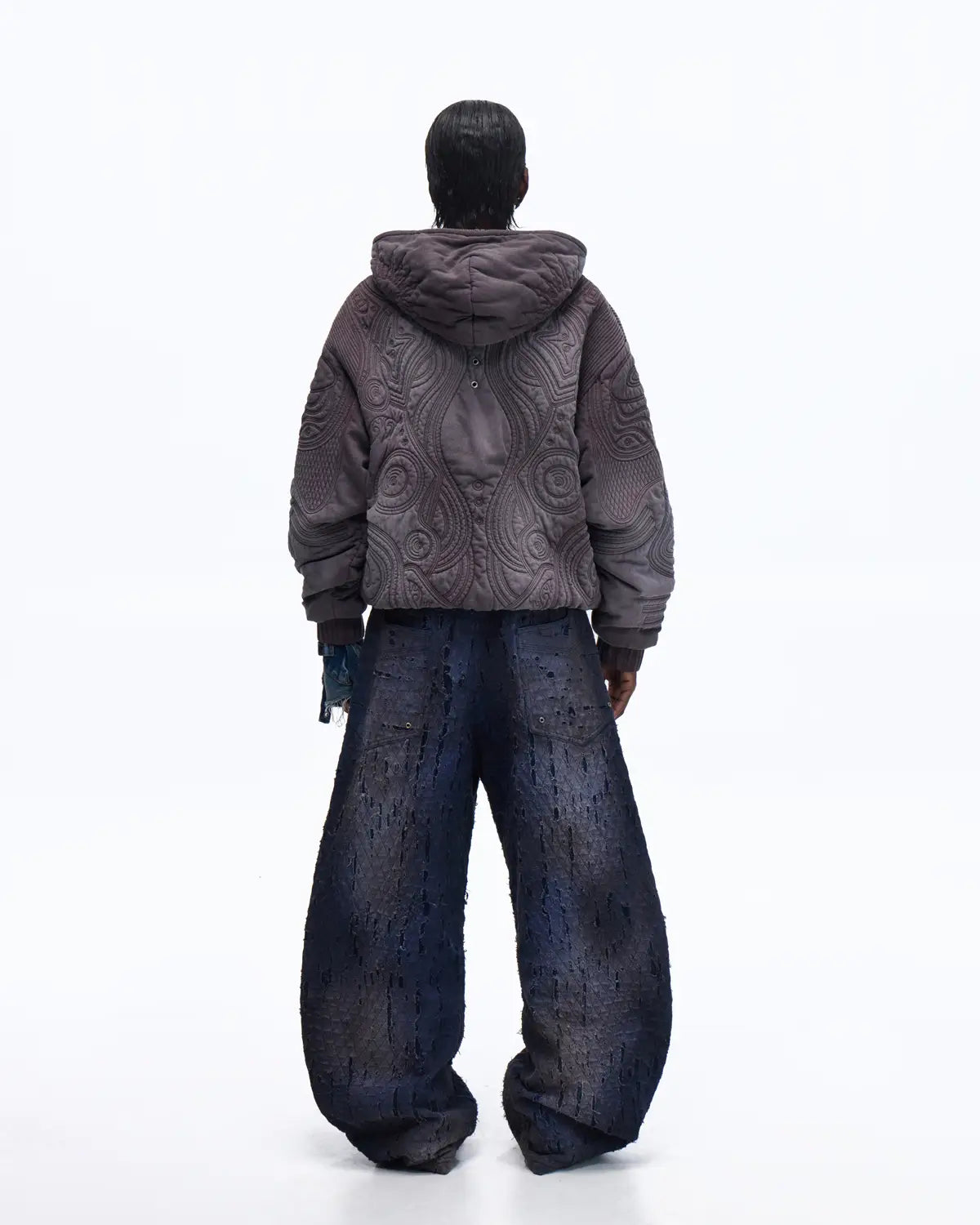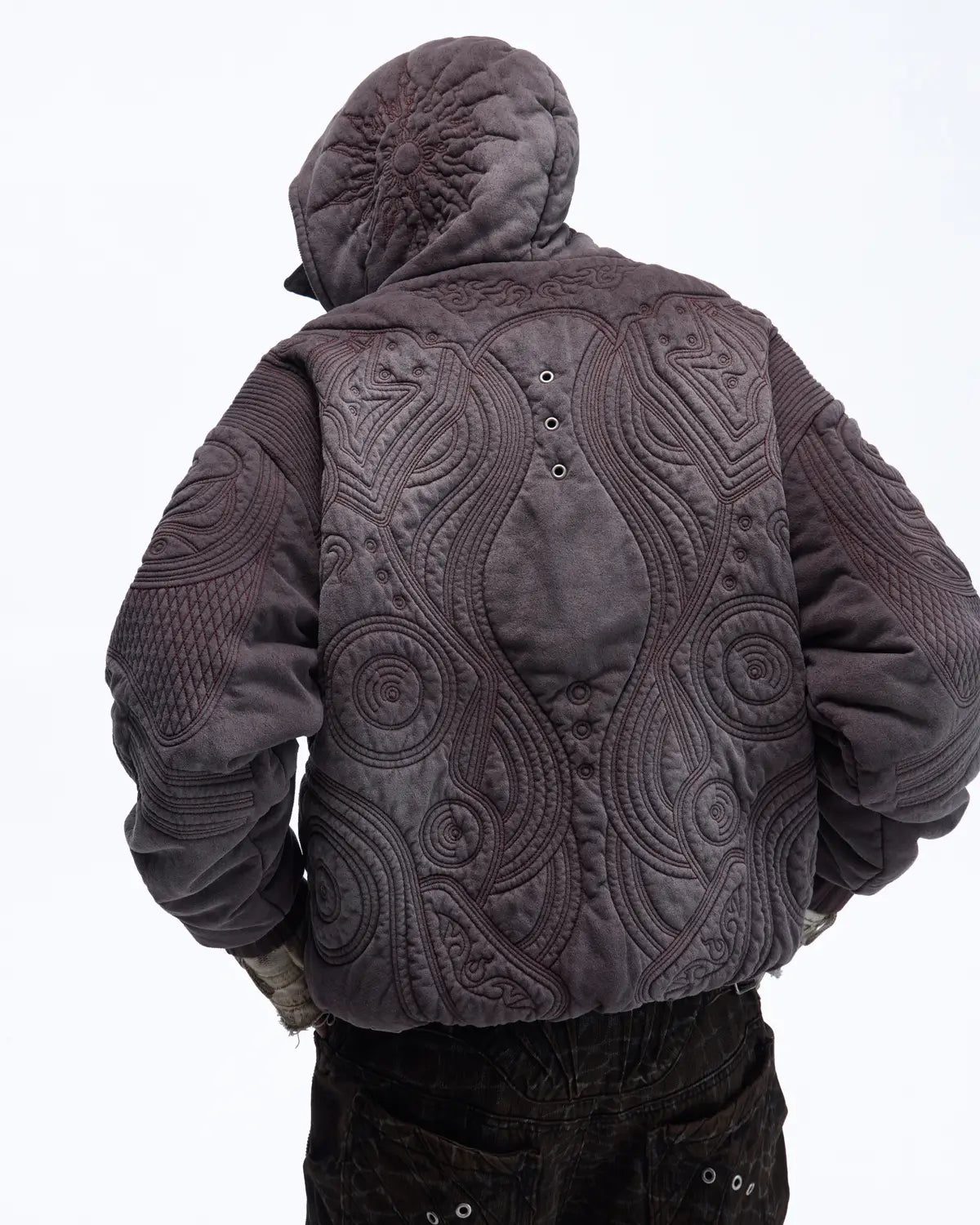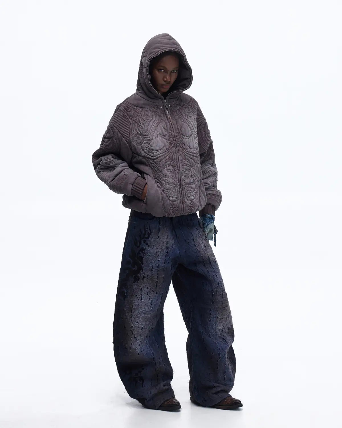 Personsoul Textured Full-Zip Hoodie with Chinese Motif Embroidery