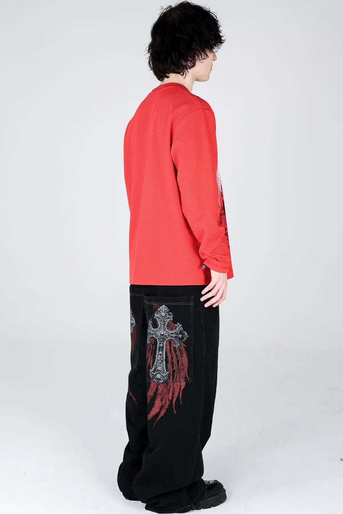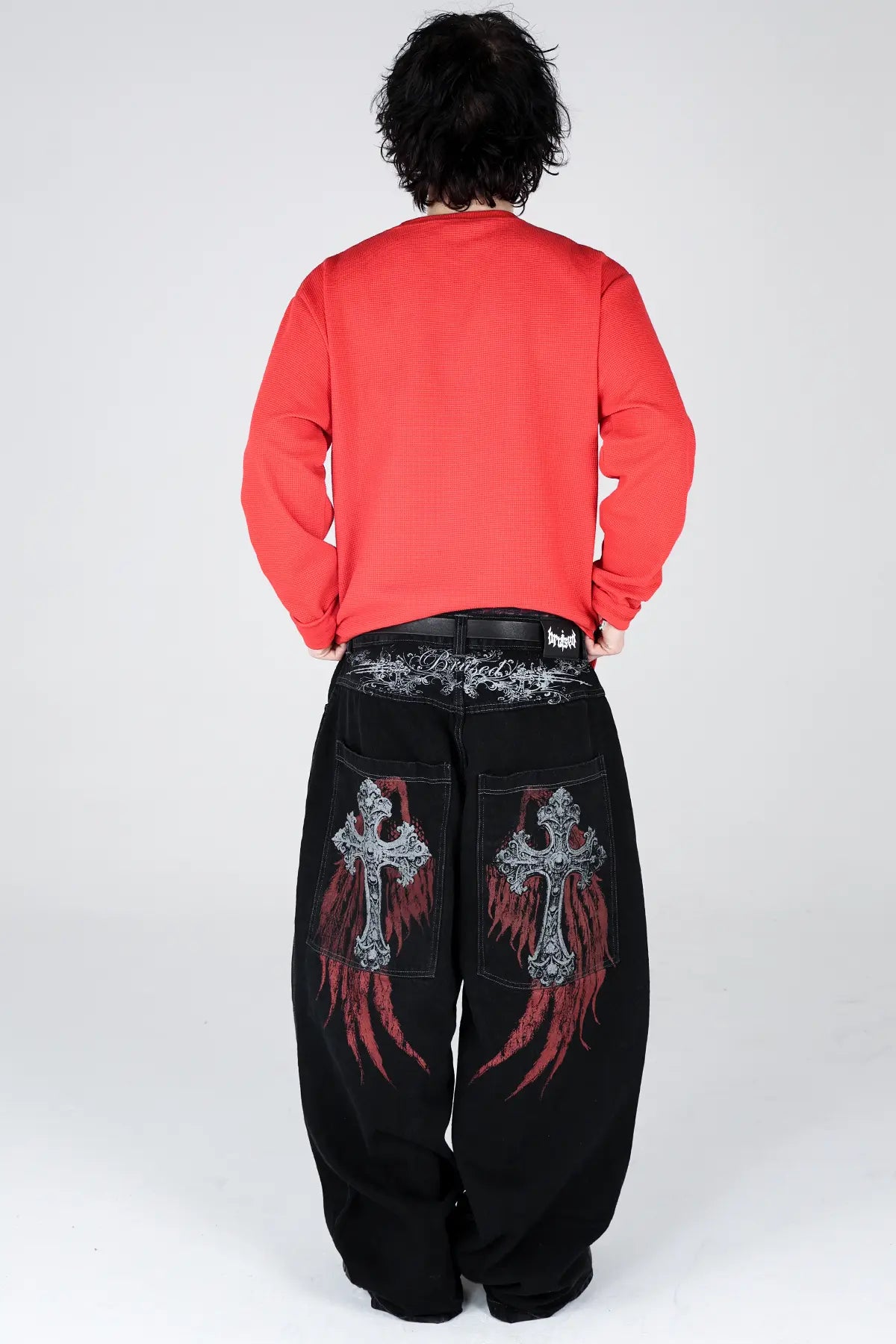 These mid-weight denim jeans are crafted for durability and everyday comfort, with premium cotton that feels great and lasts. Designed with a relaxed, baggy fit & a wide leg opening, they’re made to move with you. Finished with detailed screenprint that'll last life's roughest moments.