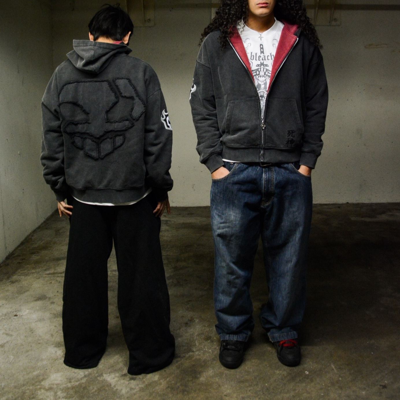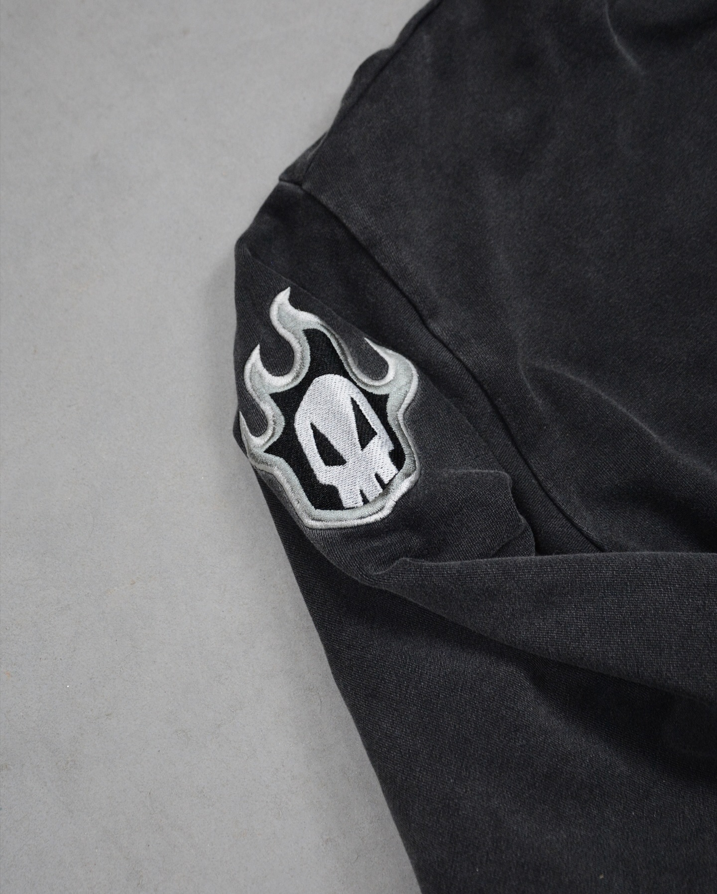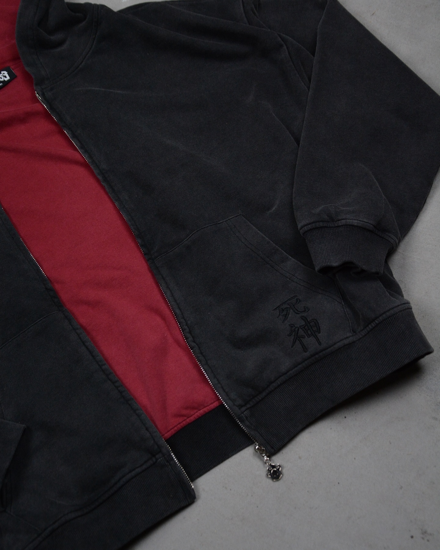“Shinigami” (死神) embroidery detail at hem