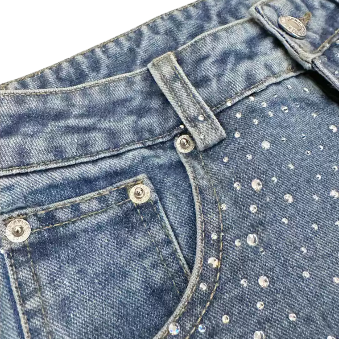 Upgrade your wardrobe with the VYBES Rhinestone Jeans, where bold streetwear meets celestial elegance. Designed for those who love to stand out, these baggy-fit jeans ensure you sparkle with every step while staying effortlessly comfortable.