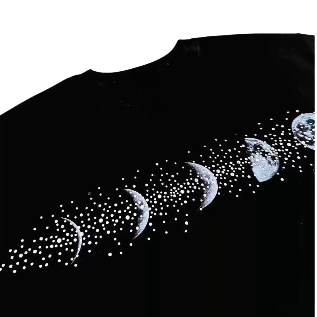 Elevate your wardrobe with the VYBES Moon Tee, a bold statement piece that fuses streetwear aesthetics with celestial-inspired elegance. Brought to you through an exclusively by VYBES.