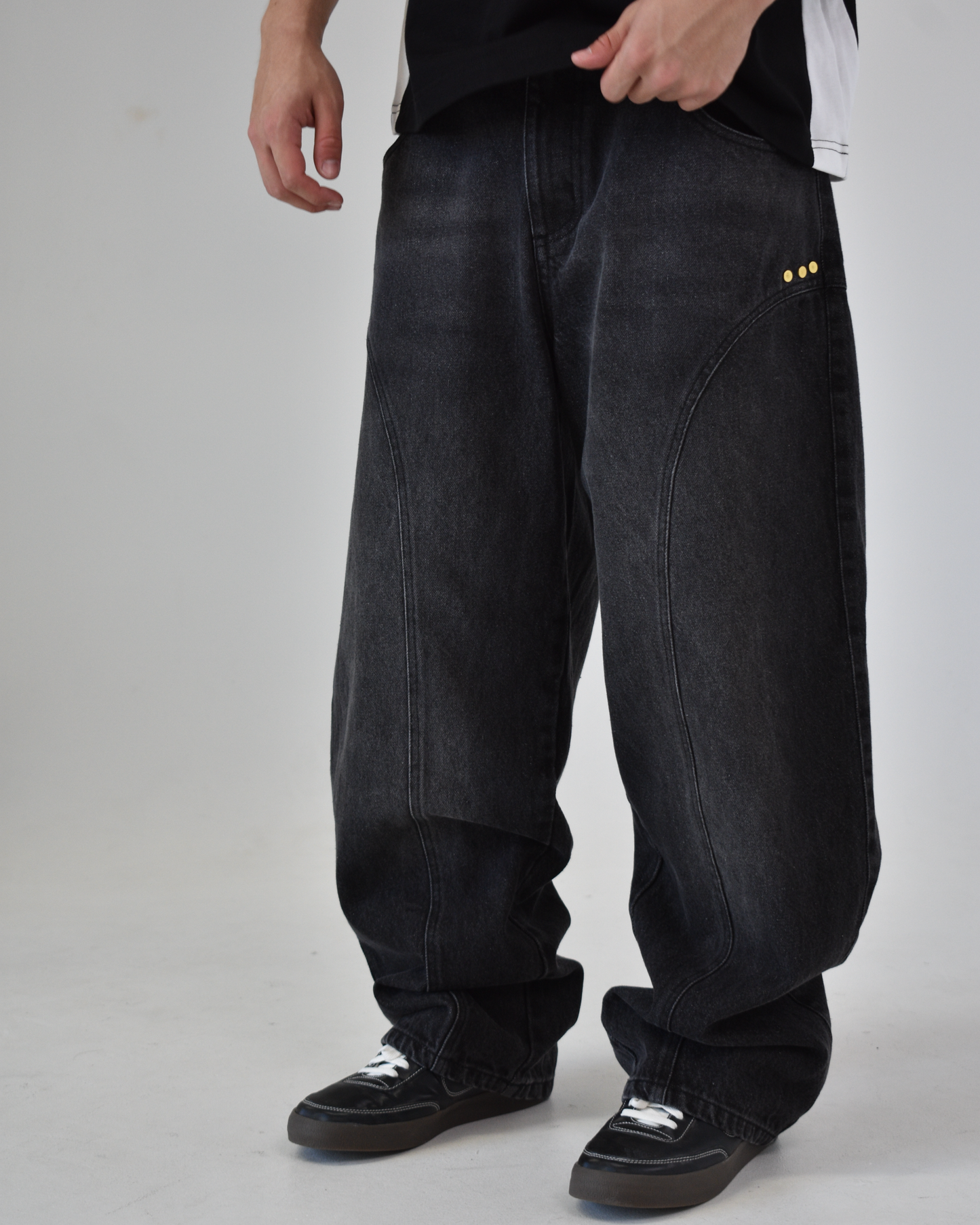 Baggy fit jeans.