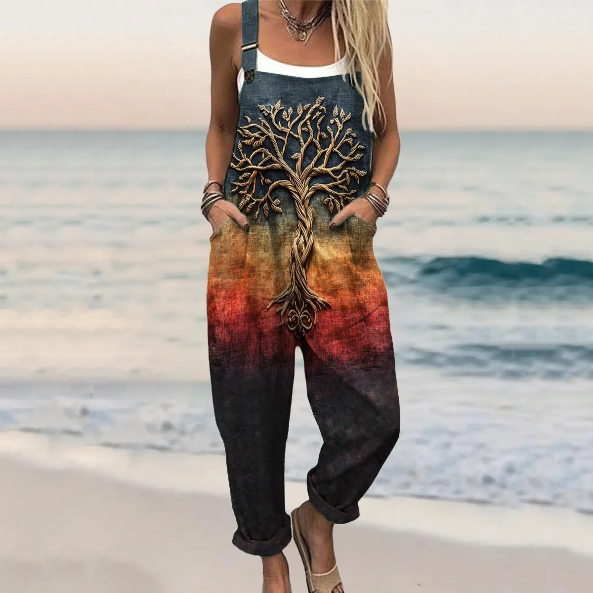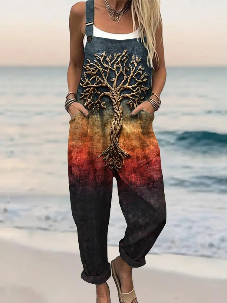 Women's Tree Of Life Gradient Art Print Casual Jumpsuit